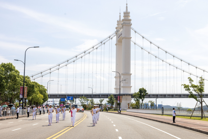 9月13日,火炬传递经过舟山港岛大桥。记者 朱海伟 吕之遥 潘海松 摄