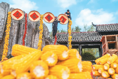 金秋时节,同样景色如画的,还有湖北省恩施土家族苗族自治州宣恩县彭家寨古吊脚楼群。彭家寨是鄂西山区保存完好的土家族民居群落,寨内吊脚楼建筑精美、古色古香。近日,不少游客来彭家寨游玩。吊脚楼群四周,稻田成熟泛黄,往楼上看,居民悬挂的玉米点缀其间,丰收图景让人喜悦。