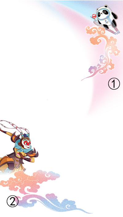 图①、图②:动画电影《我们的冬奥》中的冰墩墩、雪容融、孙悟空形象。