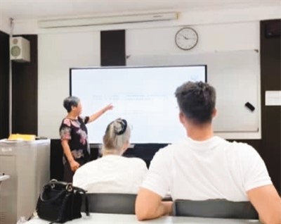 第三,我说说这里的人。大家都很热情友好,也很包容。给我们上课的老师就更不用说了,他们负责任、有耐心,还乐于助人,一点一点地教我们中文。起初,我担心自己的中文不够好,有点害怕说中文,渐渐地,我开始在老师的鼓励下尝试说中文,后来已经可以说简短的中文短句,比如会到店里问:“这个多少钱?”