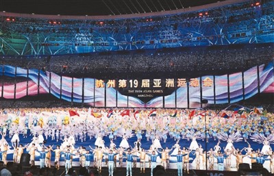 2023年9月23日,钱塘江畔。杭州用一场以“潮起亚细亚”为总主题的盛大开幕式,为第19届亚洲运动会启航。以体育为媒,杭州敞开热情怀抱,向世界呈现中华文化之美,展示各方携手推动构建亚洲命运共同体的澎湃力量。