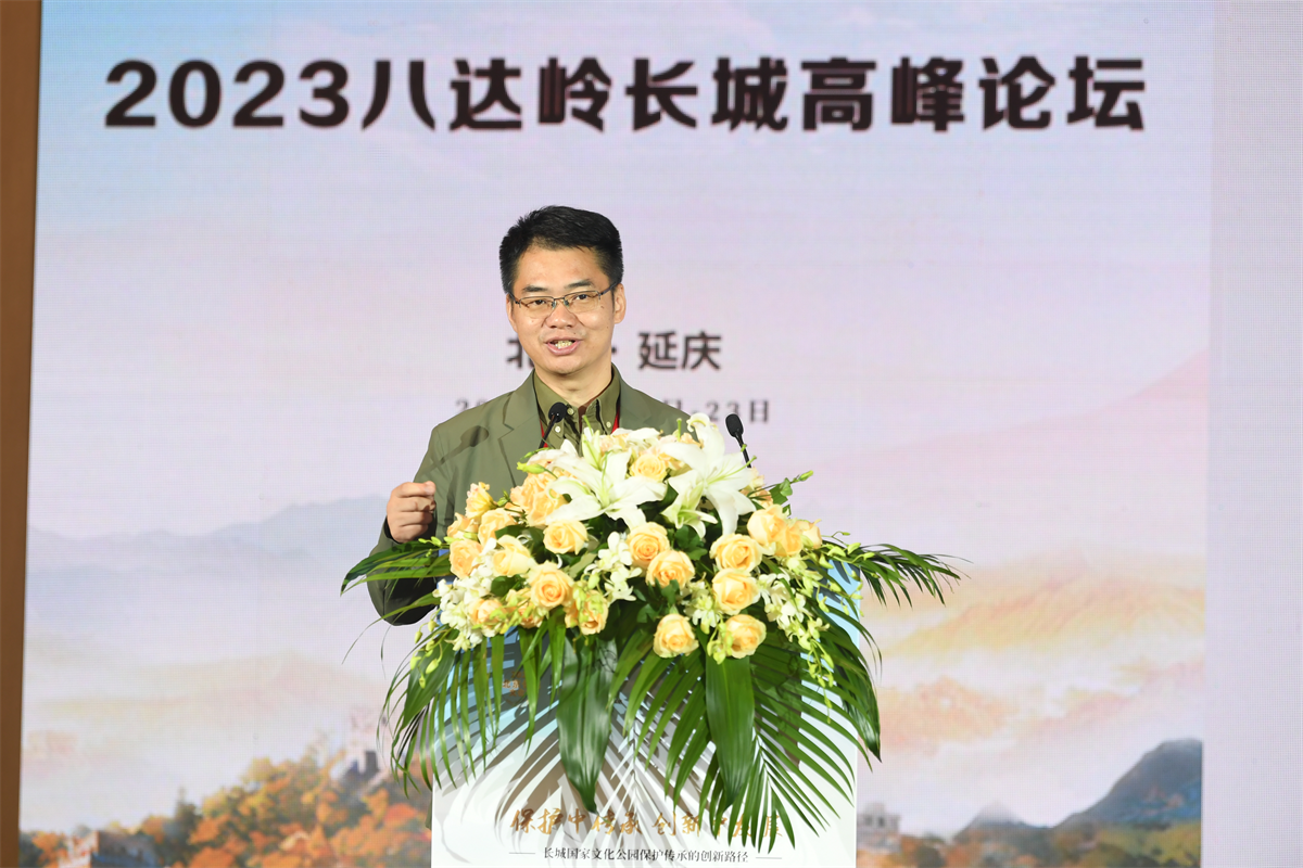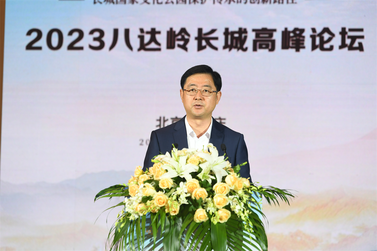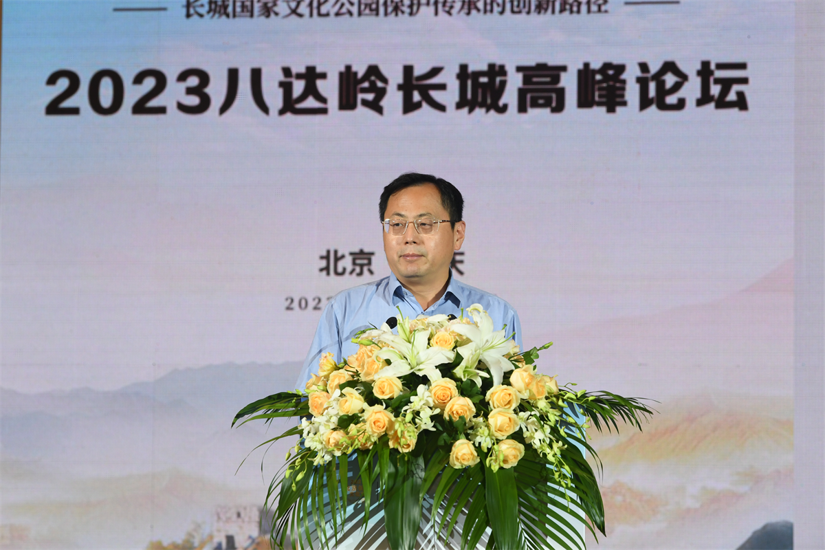 9月23日,以“保护中传承 创新中发展——长城国家文化公园保护传承的创新路径”为主题的2023八达岭长城高峰论坛在北京市延庆区圆满举办。百余位国内外专家学者与长城沿线各区代表齐聚长城脚下、妫水河畔,就共促新时代长城文化遗产保护传承利用新路径和长城国家文化公园建设的价值阐释展开研讨。中共北京市委宣传部副部长翟德罡,北京市文物局二级巡视员刘洪昌,中共北京市延庆区委书记于波,区委常委、宣传部部长马红寰,副区长任江浩等出席论坛。