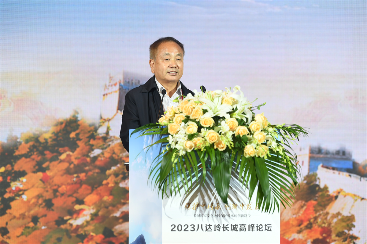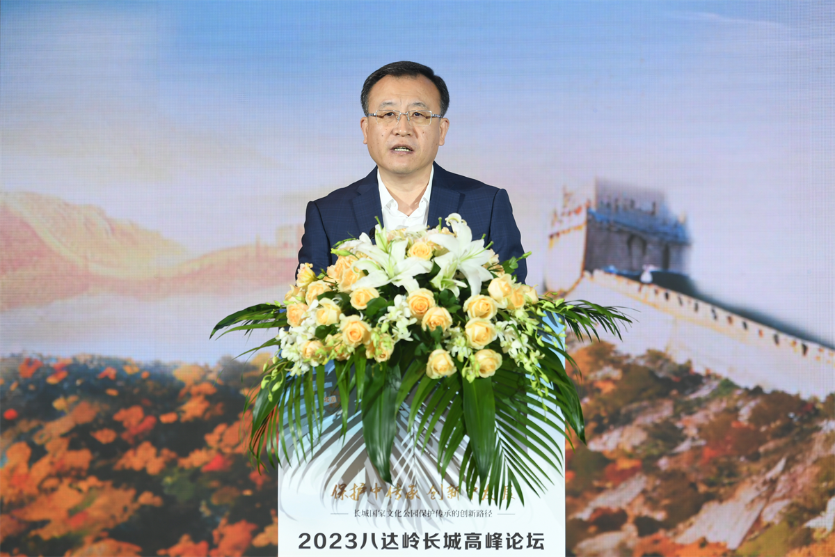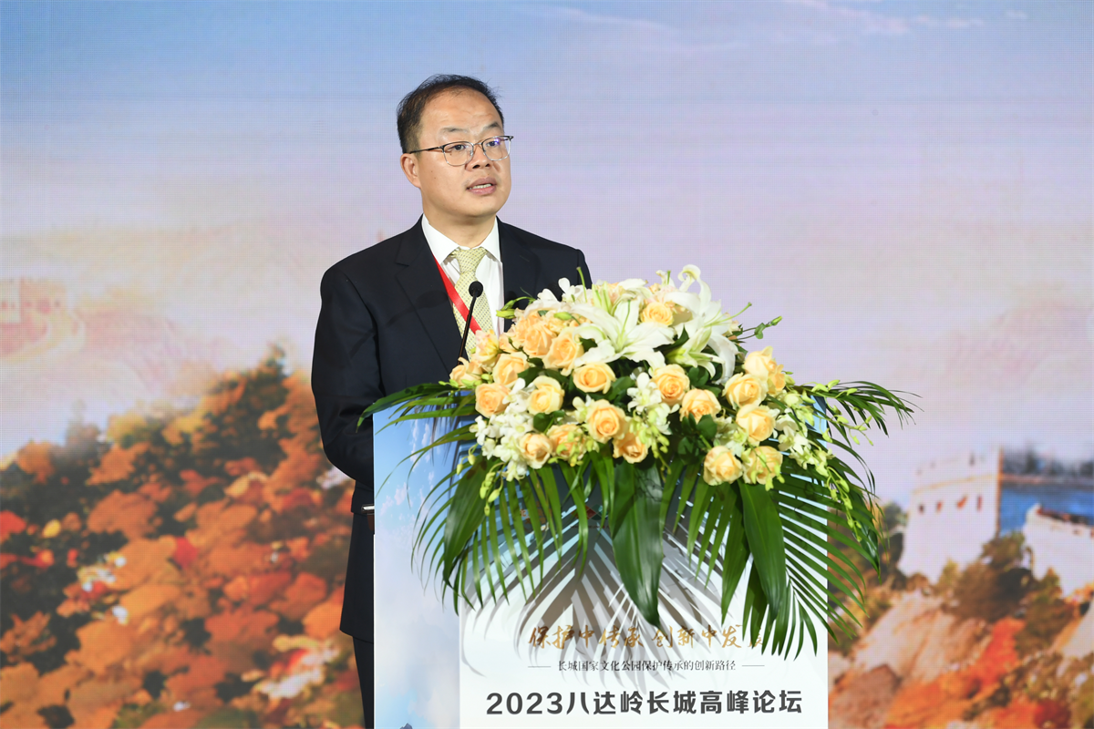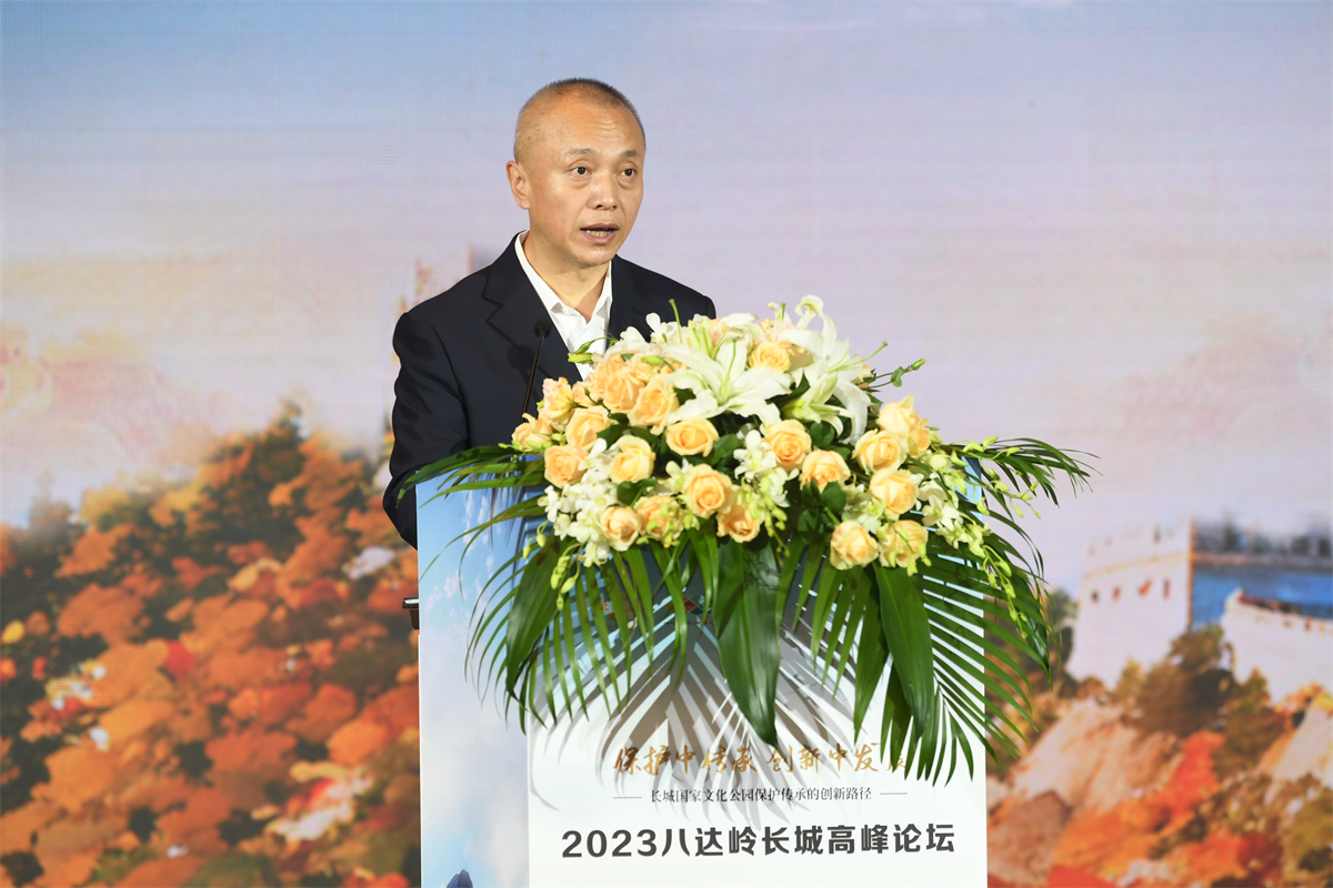 9月23日,以“保护中传承 创新中发展——长城国家文化公园保护传承的创新路径”为主题的2023八达岭长城高峰论坛在北京市延庆区圆满举办。百余位国内外专家学者与长城沿线各区代表齐聚长城脚下、妫水河畔,就共促新时代长城文化遗产保护传承利用新路径和长城国家文化公园建设的价值阐释展开研讨。中共北京市委宣传部副部长翟德罡,北京市文物局二级巡视员刘洪昌,中共北京市延庆区委书记于波,区委常委、宣传部部长马红寰,副区长任江浩等出席论坛。