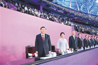 9月23日晚,第十九届亚洲运动会在浙江省杭州市隆重开幕。习近平、蔡奇、丁薛祥等党和国家领导人出席开幕式。