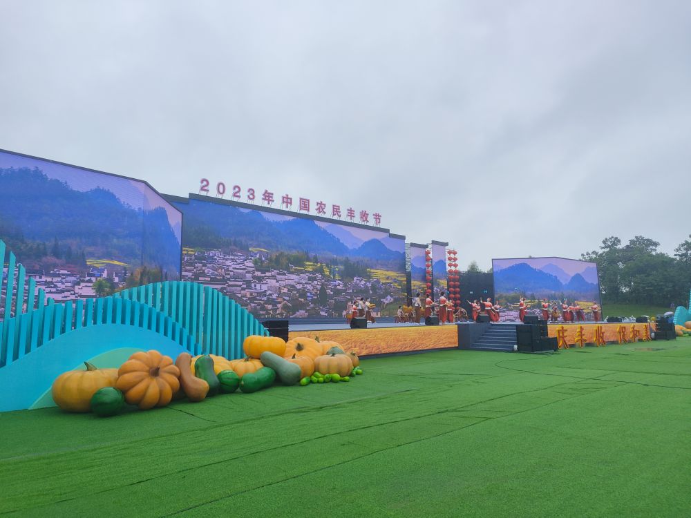 在第六个中国农民丰收节全国主场活动举办地安徽芜湖,演员正在舞台上表演节目。新华社记者 姜刚 摄
