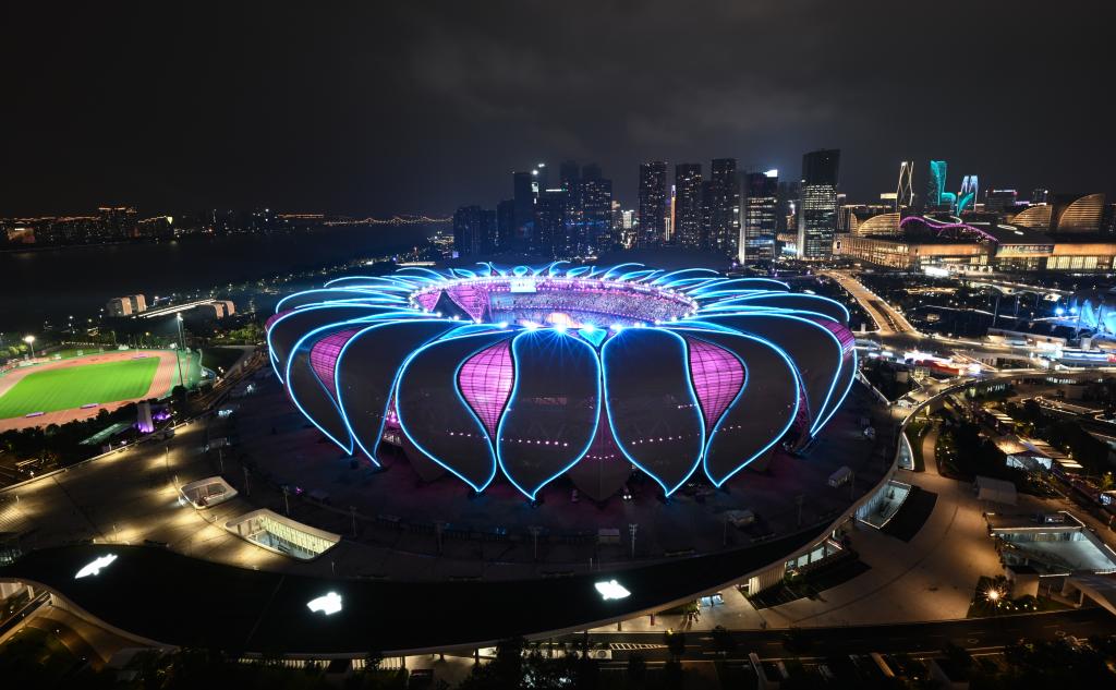 新华社杭州9月23日电(记者冯源、夏亮、段菁菁)以“潮起亚细亚”为主题,23日晚,杭州亚运会开幕式在“大莲花”杭州奥体中心体育场举行。
