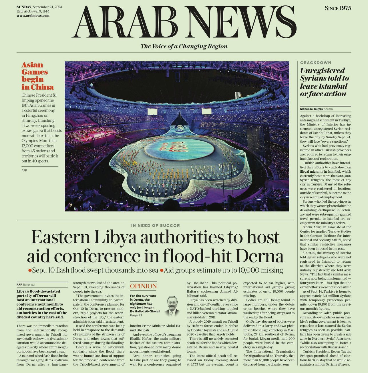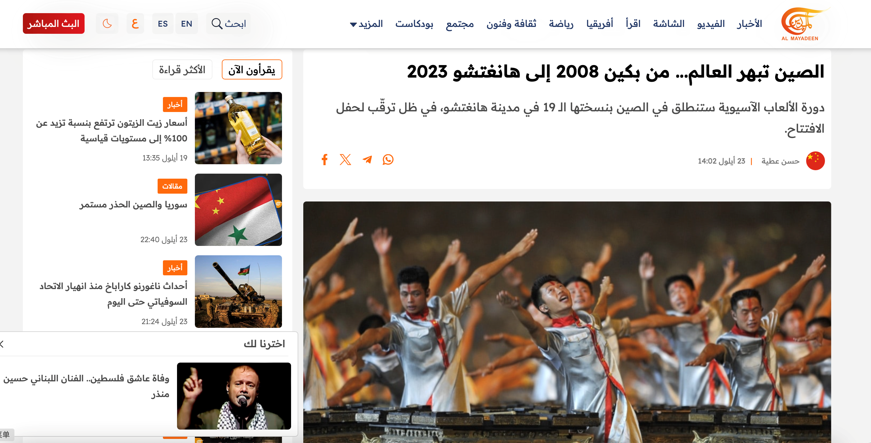 9月23日晚,第十九届亚洲运动会在中国浙江省杭州市拉开帷幕。当晚开始,中东各大媒体就频繁聚焦开幕盛况,第一时间播发报道。