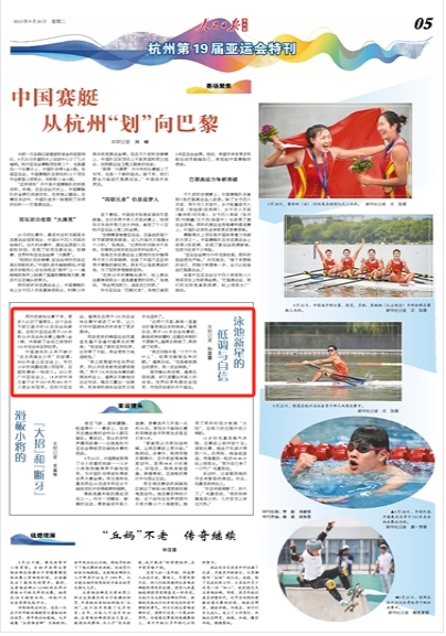 中国游泳队从来不缺少“自古英雄出少年”的故事:2002年釜山亚运会上,年仅15岁的吴鹏包揽3项冠军,在国际赛场一鸣惊人;2010年广州亚运会上,14岁的叶诗文拿下女子200米和400米个人混合泳冠军。在杭州亚运会,潘展乐在男子100米自由泳比赛中游进了47秒,让人们对中国游泳的未来有了更多期待。