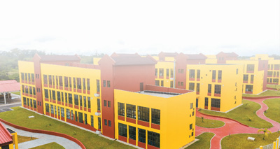 复杂的气候、地形条件下,校舍建设难度不小。在热带,砂质土壤难以筑基;在沙漠边缘,气候炎热又缺乏水源……加蓬职教项目让蒂尔港校区选址则位于一片水深没膝的沼泽地:抽水、填平需要大量的土方,工程造价高、施工难度大,但中方施工人员依然让校区如期建成。