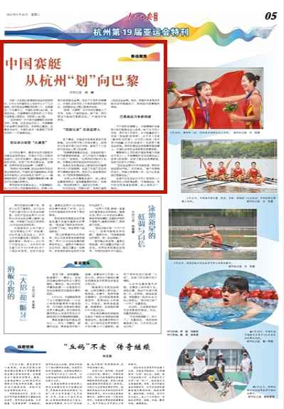 徐星叶在亚运会女子四人单桨和八人单桨项目上均获得金牌。“巴黎奥运会,我们的目标是拿到奖牌,站上领奖台!”她说。(本报记者 刘 峣)