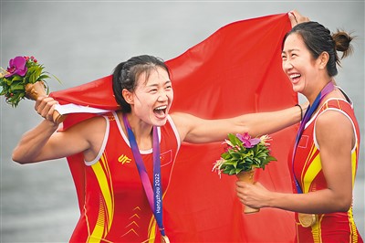 9月24日,鲁诗雨(右)/沈双美在颁奖仪式上庆祝。