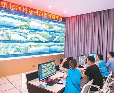 今年以来,江苏省宿迁市宿豫区关庙镇探索基层治理新模式,搭建数字乡村信息化平台,开发村级信息管理系统,完善村级数据库,打造数字林河“智慧乡村”,让群众智享数字新生活。图为在关庙镇林河村数字治理中心,工作人员通过乡村治理智慧平台实时监控、分析乡村治理信息。