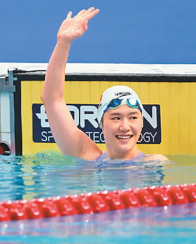 杭州亚运会上,张雨霏报名了7个项目。比赛前,她给自己定了一个目标:“我要为获得最有价值运动员(MVP)努力,至少拿到6至7枚金牌。”开赛初的出色发挥,为张雨霏的MVP之路开了个好头。