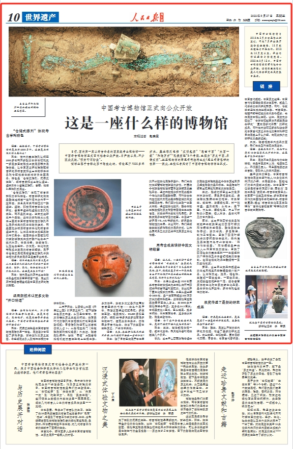 中国考古博物馆自2019年3月启动展陈大纲策划,同年7月开始展厅装修改造建设,12月完成建设与布展工作。2019年12月底以来,开始内部试运转与修改完善。2023年9月15日,中国考古博物馆正式面向社会公众开放。该馆的基本陈列是几代学者研究成果的集中展示。(赵晓霞)