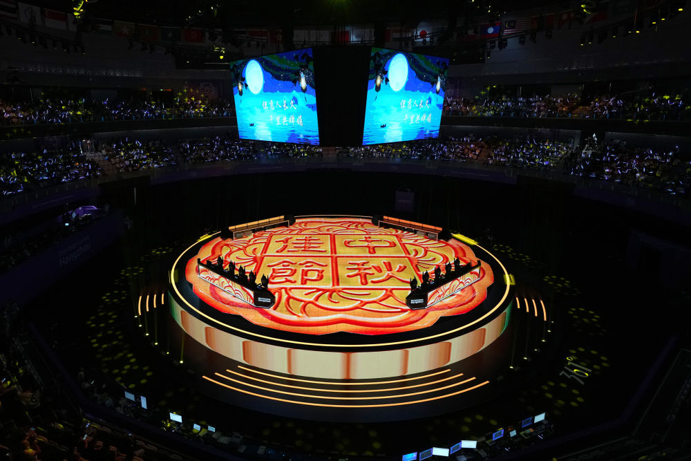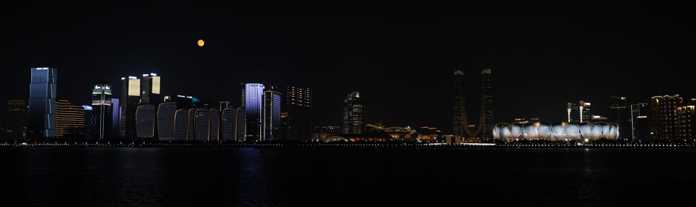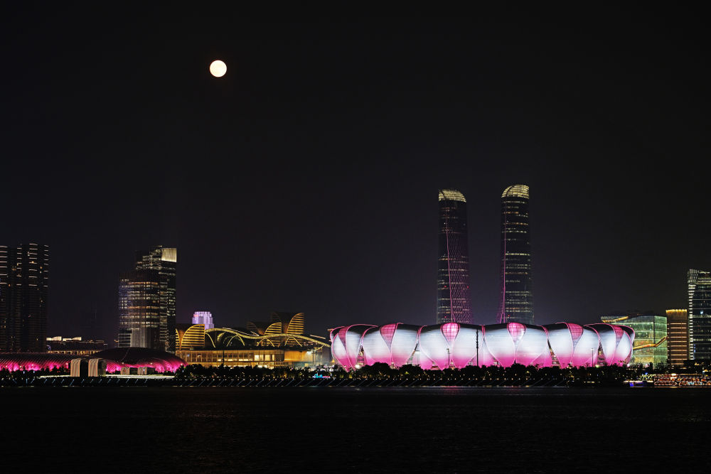 这是中秋当晚拍摄的杭州奥体中心
