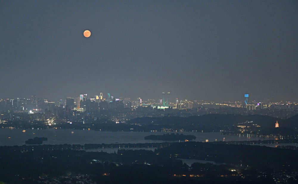 这是中秋当晚拍摄的杭州西湖