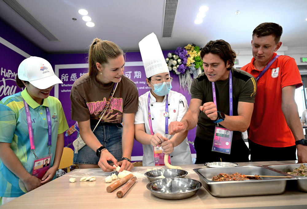代表团成员向中国厨师学习包饺子