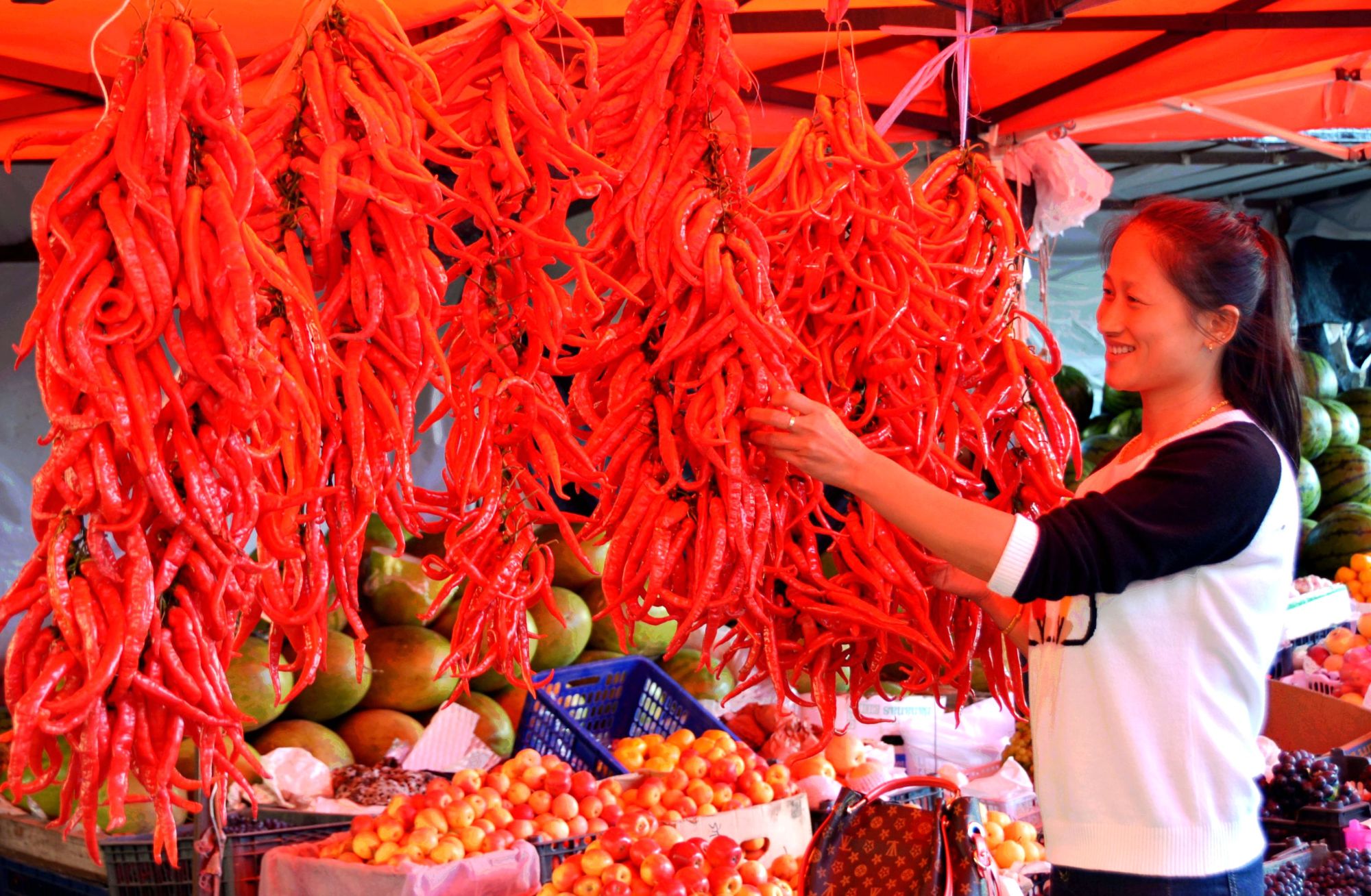 火红的辣椒获丰收(央广网发 刘江 摄)