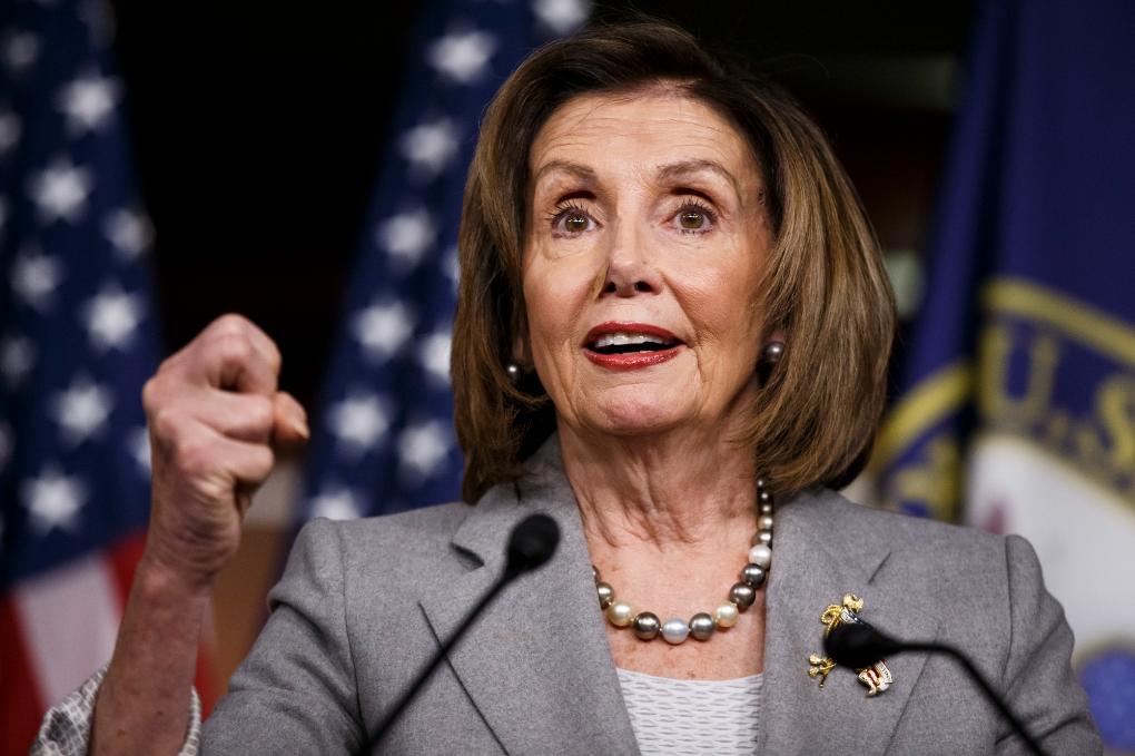 2019年12月12日,在美国首都华盛顿,时任美国国会众议院议长佩洛西在新闻发布会上发言。新华社发(沈霆摄)