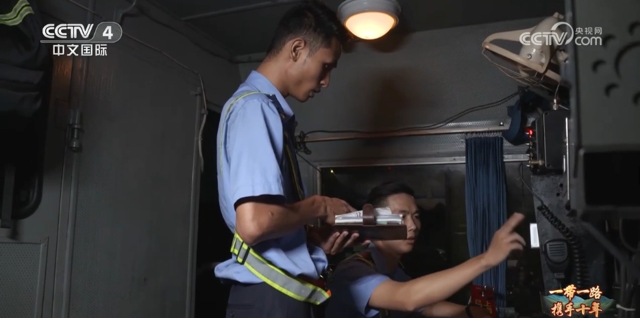 夜幕降临,聂黄彪和副司机正在核对各项数据,确保列车安全、平稳、正点出发。聂黄彪说,应对常见的夜间行车和多雨天气,每位司机都要练就一身过硬的技术。