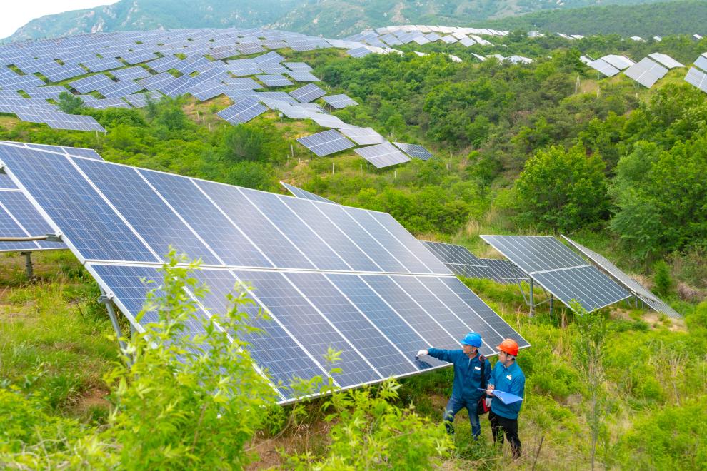 在烟台市福山区回里镇老岚村,一排排蓝色光伏板铺满山坡。这些光伏板将太阳光转化成电能,并入国网烟台供电公司后,源源不断输送到千家万户。原来无人问津的黄草坡,变成了绿色清洁能源的“发电站”。