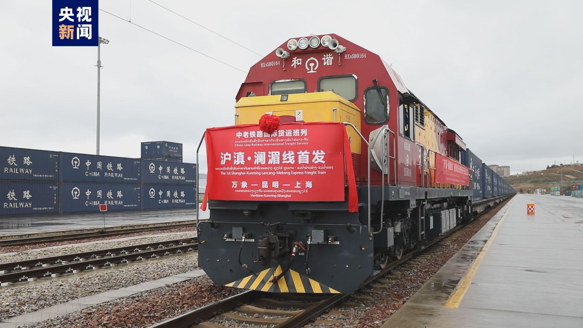 10月8日上午9时,“沪滇·澜湄线”国际货运班列开行首发仪式,在云南昆明王家营西集装箱中心站举行。9时30分左右,随着发车指令下达,36车满载来自老挝及东南亚地区的水果、橡胶和白糖、金属硅等产品的班列,缓缓鸣笛驶出,82个小时后将到达上海临港新片区芦潮港站。
