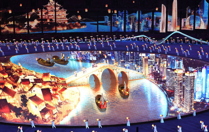 9月23日,演员在杭州亚运会开幕式上表演。新华社记者 杨磊 摄