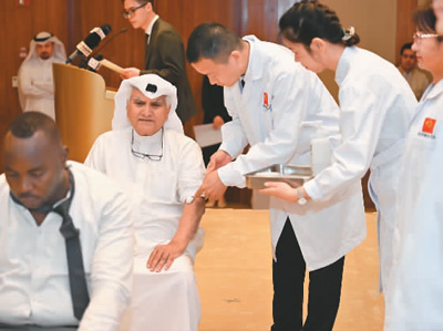 中国第15批援科医疗队于2022年11月抵达科威特,日均接待门诊患者百余名。许多患者成为中医的“铁粉”,还把亲友介绍至此,让他们也来感受中医的神奇魅力。