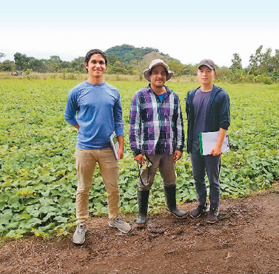 任翔(右一)和德里克(左一)拜访哥斯达黎加农户。