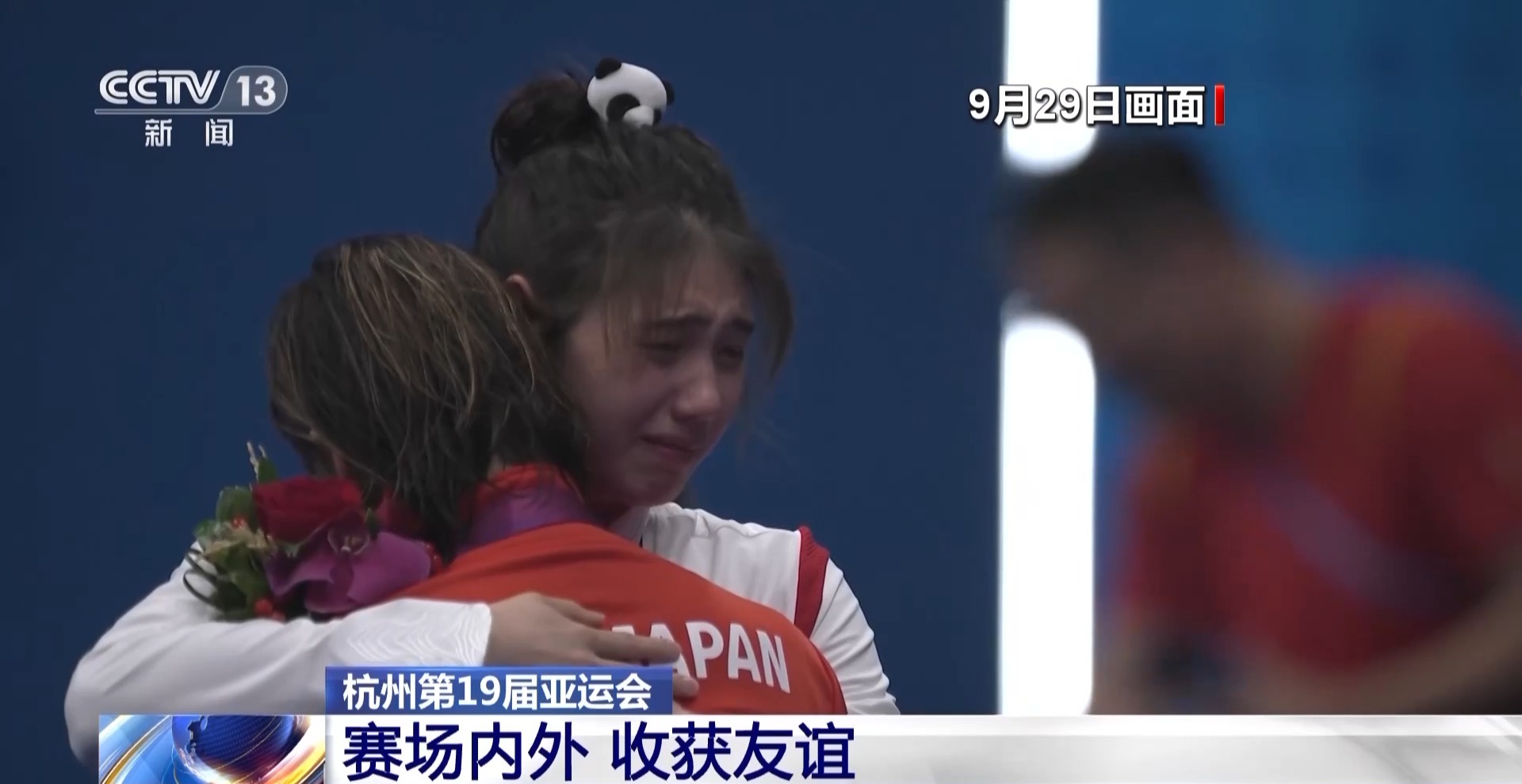 杭州亚运会女子50米蝶泳决赛中,池江璃花子拿到铜牌。张雨霏和池江璃花子赛后相拥落泪,为了杭州相聚,也为了相互鼓励,两人的这段友谊让很多人感动。