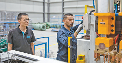 “要仔细检查一下点焊机的电极位置,确保焊点大小一致。”中国师傅张鉴槐正与埃及徒弟谢哈布讨论着碗篮的焊接技术。张鉴槐在机器旁仔细观看,谢哈布认真地研究碗篮结构,不时调节电极高低、技术参数等。张鉴槐说:“碗篮焊接是技术难度比较高的工序,谢哈布认真好学,相信他一定能掌握这门技术,成为工厂的骨干。”