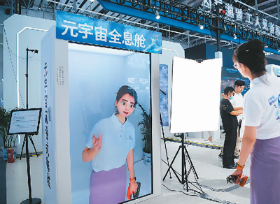 近日,2023世界制造业大会在安徽省合肥市滨湖国际会展中心举行。图为工作人员演示一款名为“元宇宙全息舱”的产品。新华社记者 张 端摄