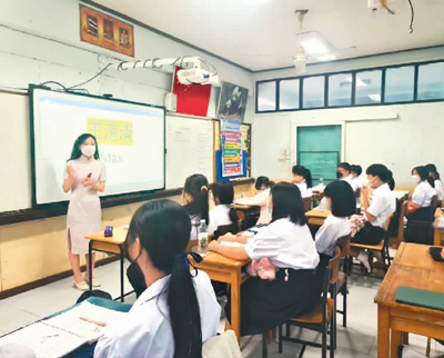 王清清在课堂上为泰国学生教授中文。