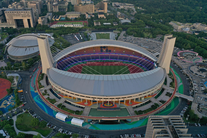 这是2023年8月21日拍摄的经过改建后的黄龙体育中心亚运场馆群(无人机照片)。新华社记者 黄宗治 摄