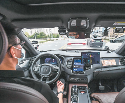 首批获得广州智能网联示范运营资质的滴滴自动驾驶网约车在广东省广州市花都区开启商业化示范运营,市民可在滴滴自动驾驶小程序下单呼叫车辆,体验自动驾驶服务,按实际行驶里程和使用时长付费。图为滴滴自动驾驶的安全员在监控车辆行程中全程不用触碰方向盘。新华社记者 刘大伟摄