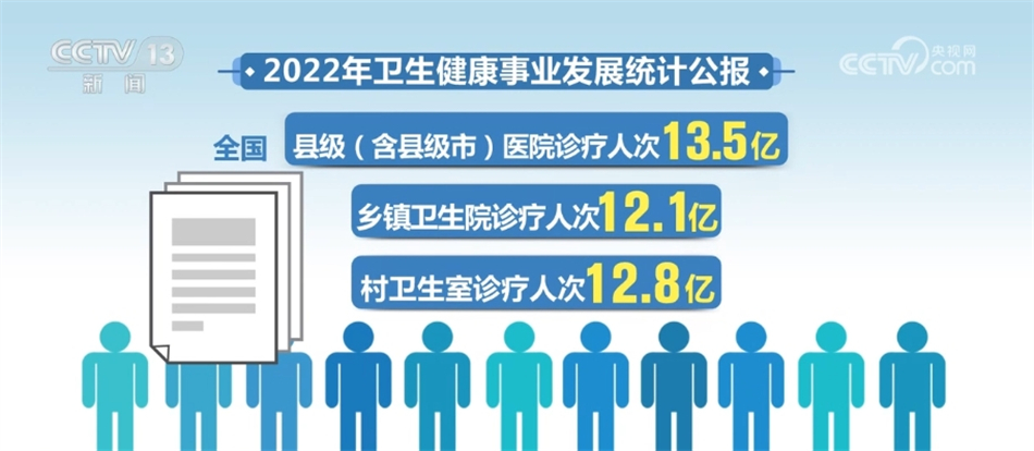 到2022年末,全国共有县级(含县级市)医院17555所,乡镇卫生院3.4万个,村卫生室58.8万个,全国县级(含县级市)医院诊疗人次13.5亿,乡镇卫生院诊疗人次12.1亿,村卫生室诊疗人次12.8亿。设立社区卫生服务中心(站)36448个,全国社区卫生服务中心诊疗人次6.9亿,社区卫生服务站诊疗人次1.4亿。