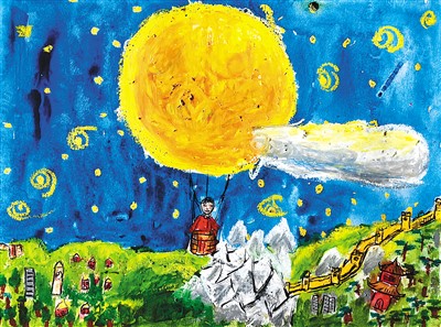 等我们静下心来,再次抬头赏月时,妈妈说:“看到那边像勺子一样的7颗星了吗?现在勺柄指向的就是妈妈从小长大的地方。”看着妈妈的眼睛,我想妈妈一定是在想念她的故乡吧。