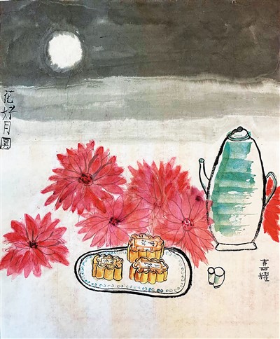 我很庆幸家人在身边,月饼是圆的,月亮也是圆的,团团圆圆最是美满。我吃着月饼,想到明代徐有贞的《中秋月·中秋月》,正是“好时节,愿得年年,常见中秋月。”