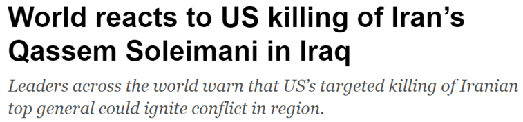 卡塔尔半岛电视台:世界各国领导人警告称,美国“定点清除”伊朗高级将领可能引发地区冲突。