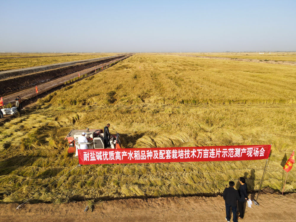 国家耐盐碱水稻技术创新中心西北中心2021年由科技部批复成立,已审定多类型耐盐碱水稻新品种12个,此次测产配套推广耐盐碱水稻丰产栽培技术,形成以耐盐碱水稻品种为核心,集成生物修复、节灌控盐、调理改土、栽培调控等关键技术措施配套的标准化方案。