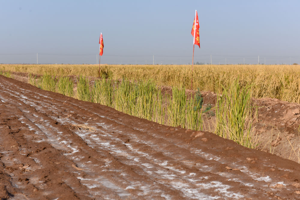 新疆阿克苏地区及新疆建设兵团第一师稻区面积40万亩左右。在这里,水稻除了用来食用,还肩负着重要使命——作为盐碱地改良的首选粮食作物,洗盐压碱、实行水旱(棉花等)轮作倒茬,改良盐碱地和次生盐碱地、防止土地荒漠化,降低土壤盐碱及减轻病虫害。