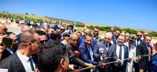 2023年8月12日,阿尔及利亚总理阿卜杜拉赫曼(前右四)参加阿尔及利亚东西高速公路东标段主线84公里段通车仪式。中信建设供图