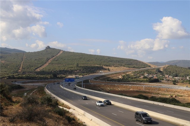 2023年10月8日,阿尔及利亚社会车辆在东西高速公路上行驶。中信建设供图