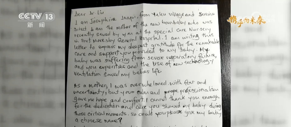 随着呼吸机开始正常运转,患儿的重要生命体征也重回正常范围内。看到孩子脱离呼吸机的那一刻,患儿母亲乔瑟菲·伊奈皮握着刘振球的手不停说谢谢。事后,她专门写了一封信表达自己的感激之情。她在信中说:“作为一个母亲,我被恐惧和不确定所淹没,但你的镇静和专业给了我希望和安慰。我要感谢整个中国医疗队来到巴布亚新几内亚。”这次中国医生成功挽救巴新新生儿的事迹,迅速在当地引起强烈反响,巴新多家主流媒体进行了广泛报道。