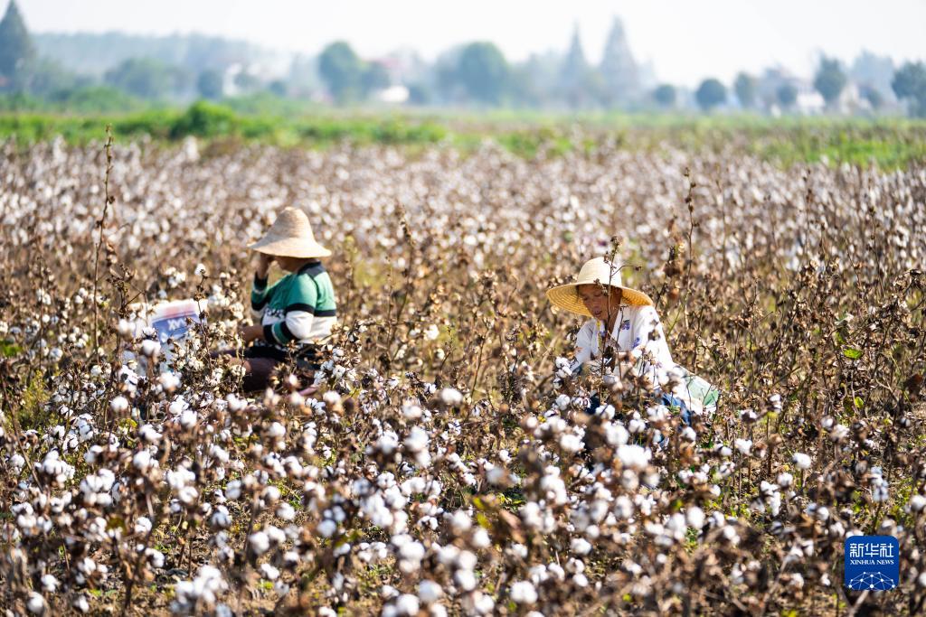 金秋十月,湖南省益阳市南县种植的4万余亩棉花相继进入采收季。这是10月15日,棉农在南县浪拔湖镇太阳山村采收棉花。