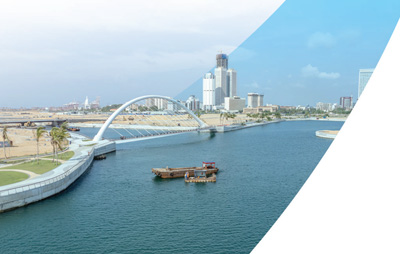 正在建设中的斯里兰卡科伦坡港口城是中国与斯里兰卡共建“一带一路”重点合作项目。图为科伦坡港口城一号步行桥及游艇码头区。杨 一 向 楠摄影报道