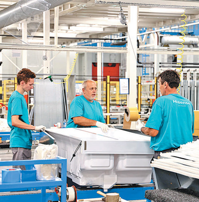 中国家电企业海信集团位于塞尔维亚瓦列沃的冰箱工厂今年9月正式投产运营。图为工人在生产线上忙碌。本报记者 刘仲华摄