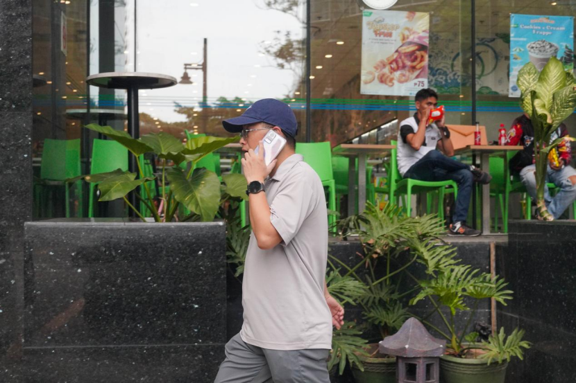 菲律宾街头,一位路人正在使用智能手机、智能手表等智能电子设备 海外网 谢明/摄