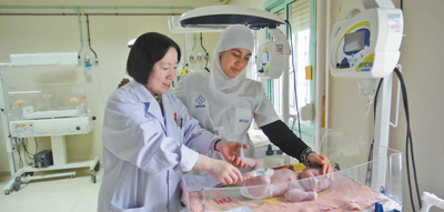 2011年,徐长珍在阿尔及利亚赛伊达妇产医院的新生儿室查房。
