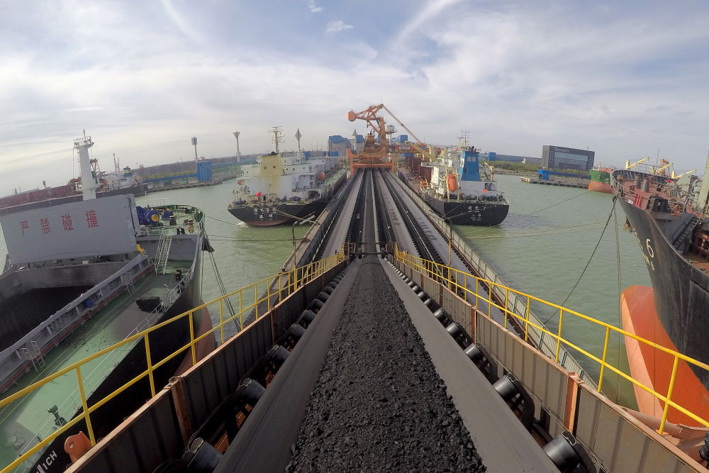 河北黄骅港:加快建设多功能综合性现代化大港。10月19日,在黄骅港煤炭港区码头,装船机在进行装船作业。新华社记者 骆学峰 摄